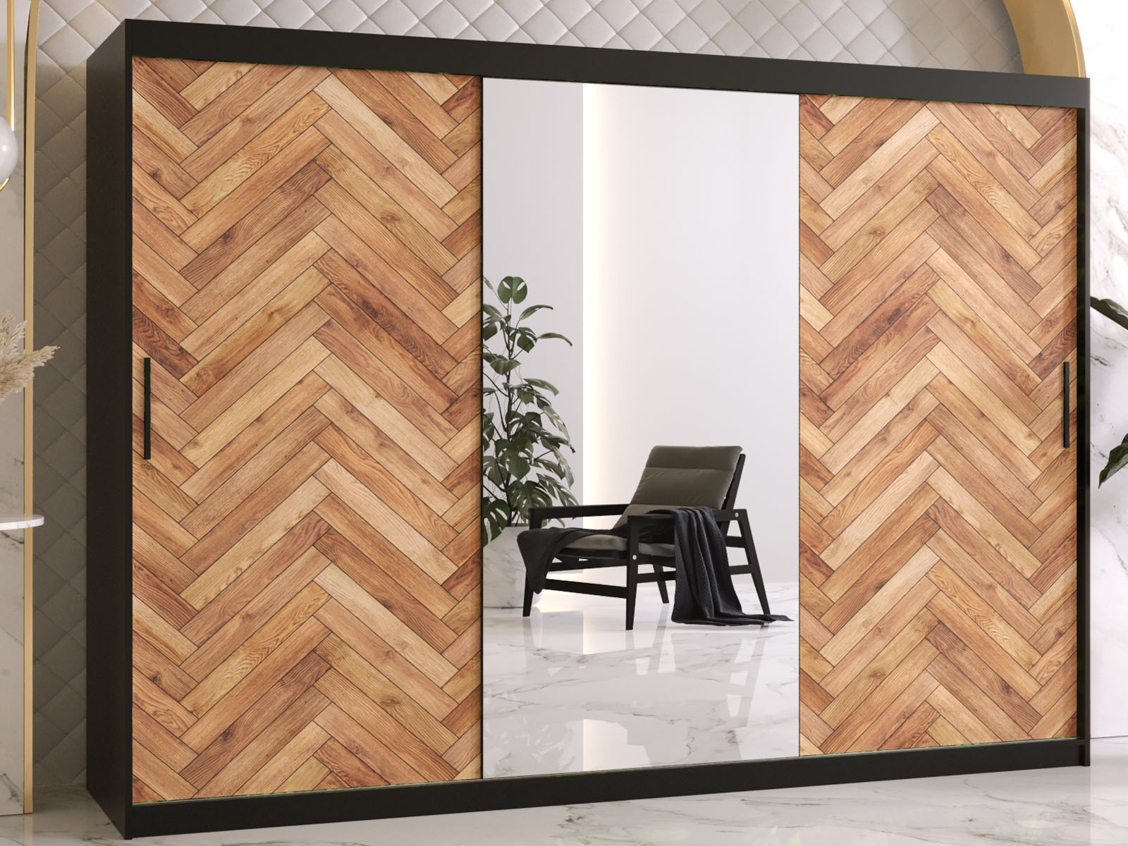 Kledingkast PARKIETO 2 schuifdeuren 250 cm mat zwart met spiegel